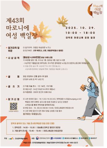 ¿©¼ºÀÌ¸é ´©±¸³ª ¹«·á·Î Âü¿©ÇÒ ¼ö ÀÖ°í ¢º½Ã ¢º»ê¹® ¢º¾Æµ¿¹®ÇÐ(µ¿½Ã¡¤µ¿È) Áß ÇÑ ºÎ¹®À» ¼±ÅÃÇØ ÀÀ¸ðÇÒ ¼ö ÀÖ´Ù.