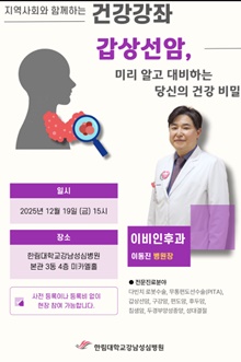 ÇѸ²´ëÇб³°³²¼º½Éº´¿ø(º´¿øÀå À̵¿Áø)Àº 12¿ù 19ÀÏ ¿ÀÈÄ 3½Ã º»°ü 3µ¿ 4Ãþ ¹ÌÄ«¿¤È¦¿¡¼ ¡®°©»ó¼±¾Ï ¹Ì¸® ¾Ë°í ´ëºñÇÏ´Â ´ç½ÅÀÇ °Ç° ºñ°á¡¯ ÁÖÁ¦·Î °Ç°°Á¸¦ °³ÃÖÇÑ´Ù.