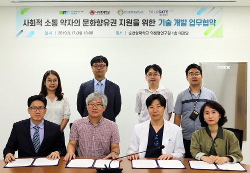 ¼øÃµÇâ´ëõ¾Èº´¿øÀº 17ÀÏ ¿ÀÈÄ ¼øÃµÇâÀÇ»ý¸í¿¬±¸¿ø 1Ãþ ȸÀǽǿ¡¼ ³ª»ç·¿´ëÇб³, ±¤ÁÖ°úÇбâ¼ú¿ø, ¢ß¼Ö·ç°ÔÀÌÆ®¿Í ¾÷¹«Çù¾àÀ» ü°áÇϰí ÀÇ»ç¼ÒÅë ¾àÀÚµéÀÇ ¼ÒÅëÀ» µ½´Â ±â¼ú°³¹ß¿¡ ³ª¼¹´Ù. Çù¾à½Ä¿¡¼ (¾ÕÁÙ ¿ÞÂʺÎÅÍ) ¢ß¼Ö·ç°ÔÀÌÆ® ¹Î¼ºÅ ´ëÇ¥ÀÌ»ç, ±¤ÁÖ°úÇбâ¼ú¿ø Àü¹®±¸ ¼ÒÀå, ¼øÃµÇâ´ëõ¾Èº´¿ø ÀÇ·á±â±âÁß°³ÀÓ»óÁö¿ø¼¾ÅÍ ÀÌÄ¡±Ô ¼¾ÅÍÀå, ³ª»ç·¿´ëÇб³ È«°æÈÆ ±³¼ö°¡ °ü°èÀÚµé°ú ±â³äÃÔ¿µÇϰí ÀÖ´Ù.