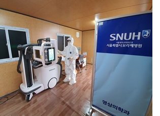 ÇÑÆí, »ýȰġ·á¼¾ÅÍ¿¡´Â ±Û·Îºê-¿ù(Glove-Wall) °ËüäÃë ½Ã½ºÅÛÀÌ µµÀԵǾî ÀÖ´Ù. ÇØ´ç ½Ã½ºÅÛÀº Áö³ 2¿ù ÃʺÎÅÍ º¸¶ó¸Åº´¿øÀÌ ¼±º°Áø·á¼Ò¿¡ ±¹³» ÃÖÃÊ·Î µµÀÔÇØ ¿î¿µÇϰí ÀÖ´Â °Ë»ç ¹æ½ÄÀ¸·Î, Áß¾Ó¿¡ ¼³Ä¡µÈ ¾ÆÅ©¸± À¯¸®º®¿¡ Àå°©ÀÌ ´Þ¸° ±¸¸ÛÀ» ÅëÇØ °Ëü¸¦ äÃëÇØ °¨¿°À§ÇèÀ» ÃÖ¼ÒÈÇÑ ¹æ½ÄÀÌ´Ù.