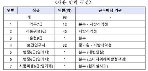 ½ÄǰÀǾàǰ¾ÈÀüó(óÀå ÀÌÀǰæ)´Â ½Äǰ‧ÀǾàǰ ¾ÈÀü°ü¸® ¾÷¹«¸¦ ¼öÇàÇÒ ±¹°¡°ø¹«¿ø 93¸íÀ» ¼±¹ßÇϱâ À§ÇÑ °æ·Â°æÀïä¿ë½ÃÇè ½ÃÇà°èȹÀ» °ø°íÇß´Ù.