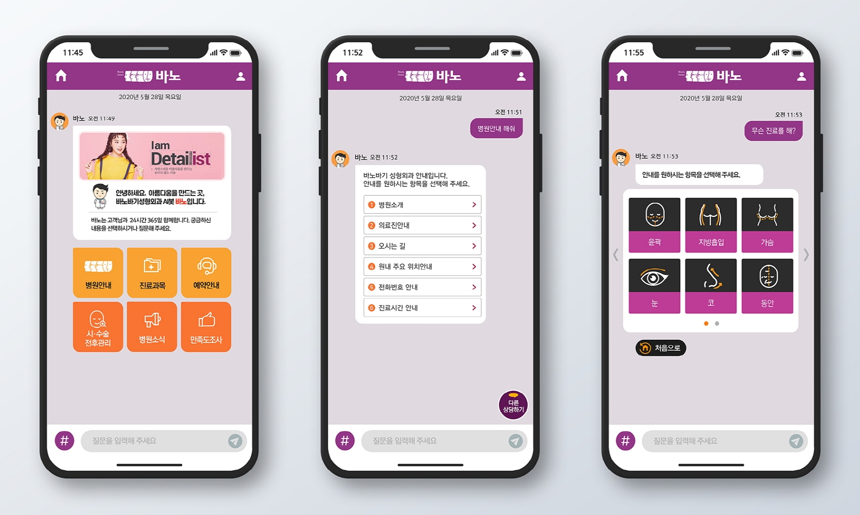 ¹Ù³ë´Â º´¿ø¸í ¡®¹Ù³ë¹Ù±â ¼ºÇü¿Ü°ú¡¯¿¡¼ À̸§À» ¶¤À¸¸ç, ¹Ù³ë¹Ù±â º»°ü 1Ãþ ·Îºñ¸¦ µ¹¾Æ´Ù´Ï¸ç Áø·á °ú¸ñ, ÇÁ·Î¸ð¼Ç, ¿¹¾à µî¿¡ ´ëÇÑ Á¤º¸¸¦ ³»¿ø°´µéÀÌ ½±°Ô È®ÀÎÇÒ ¼ö ÀÖ°Ô µµ¿ÍÁØ´Ù. µ¿Çà, À§Ä¡ ÀúÀå, ¿µ»ó ÀüÈ ±â´É µîÀÌ Å¾ÀçµÅ ÀÖ¾î Áø·á½Ç µî º´¿ø ³» À§Ä¡ ¾È³»±îÁö °¡´ÉÇÏ´Ù.