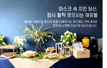 ¹ÌÁö¸Þµðº´¿øÀº Áö³ 5¿ù28ÀÏ, ±ô¦ À̺¥Æ®·Î ½Ä»ç¸¦ Ư½Ä°ú µðÀúƮīÆä·Î ÁغñÇÏ¿© Äڷγª19·Î ¾Ö½á¿Â Á÷¿øµéÀÇ ÁöÄ£¸¶À½À» À§·ÎÇß´Ù.