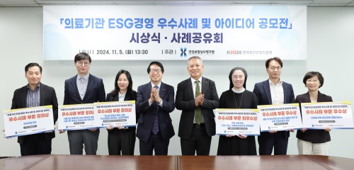 Áö³ 5ÀÏ ¼¿ï ¼Ãʱ¸ ±¹Á¦ÀüÀÚ¼¾ÅÍ 23Ãþ ´ëȸÀǽǿ¡¼ ¿¸° ESG ¿ì¼ö»ç·Ê ¹× ¾ÆÀ̵ð¾î °ø¸ðÀü ½Ã»ó½Ä¿¡¼ °Ç°º¸Çè½É»çÆò°¡¿ø ¿À¼ö¼® ±âȹ»óÀÓÀÌ»ç(»çÁø ¿ÞÂÊ¿¡¼ 5¹øÂ°)¿Í Çѱ¹º¸°Ç»ê¾÷ÁøÈï¿ø È«Çå¿ì ±âȹÀ̻簡(4¹øÂ°) Àå·Á»óÀ» ¼ö»óÇÑ ¼¼Á¾º´¿ø ÃÖ¿µ±Ù ºê·£µå¸¶ÄÉÆÃ½ÇÀå(»çÁø °¡Àå ¿ÞÂÊ) µî ¼ö»óÀÚµé°ú ±â³ä ÃÔ¿µÇϰí ÀÖ´Ù. / ¼¼Á¾º´¿ø Á¦°ø>