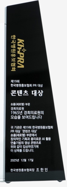 °æÈñÀÇ·á¿ø(¿øÀå ¿ÀÁÖÇü)Àº 12¿ù 17ÀÏ(¼ö), LWÄÁº¥¼Ç¿¡¼ °³ÃÖµÈ Á¦19ȸ Çѱ¹º´¿øÈ«º¸Çùȸ PR´ë»ó¿¡¼ ¿µ»ó(¼¼·ÎÇü ¼ôÆû) ºÎ¹® ÄÜÅÙÃ÷ ´ë»óÀ» ¼ö»óÇß´Ù.