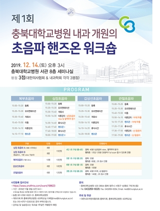 ÃæºÏ´ëÇб³º´¿ø(¿øÀå ÇÑÇå¼®) ³»°ú¿¡¼ ¡®Á¦1ȸ ÃæºÏ´ëÇб³º´¿ø ³»°ú °³¿øÀÇ ÃÊÀ½ÆÄ ÇÚÁî¿Â ¿öÅ©¼ó¡¯À» °³ÃÖÇÑ´Ù.