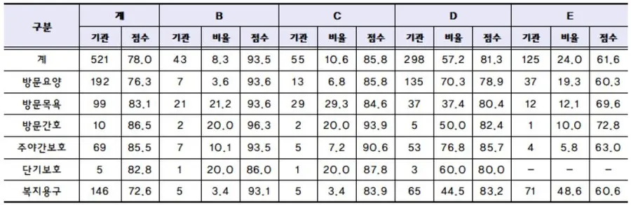 〈급여종류별 평가등급 및 평균점수 현황〉