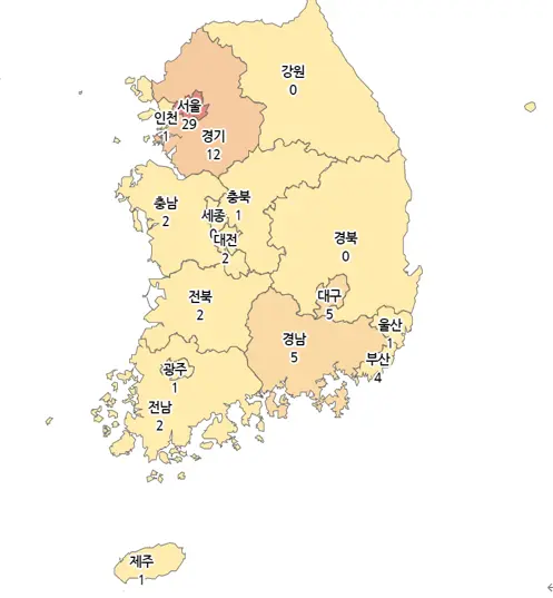 2022년 현재 전국 소아혈액종양 전문의 분포