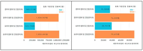 △ 진료비는 의과(61,691,926천원) 및 한의과(230,361,726천원)으로 한의과가 의과 대비 373.4%(3.7배)