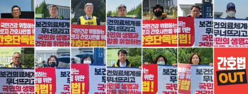 보건복지의료연대 소속 단체들은 4월 마지막 주 국회 앞에서 간호법과 의료인 면허취소법 저지를 위한 릴레이 1인 시위를 전개했다.