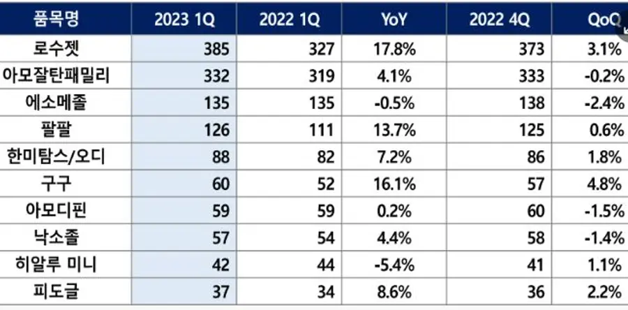 1분기 로수젯 매출 17.8%-팔팔 13.7%도 약진
