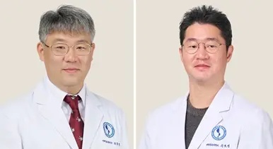 아주대병원 신경통증클리닉 최종범·길호영(사진 왼쪽부터)교수(마취통증의학과)는 2017년부터 2019년까지 추간판 탈출증으로 진단받은 환자 60명에서 ‘경피적 플라스마 추간판 감압술’을 시행 후 바로 ‘경막외강 조영술’을 통해 치료효과를 확인했다.