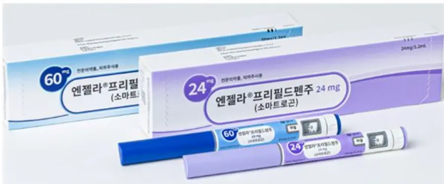 국내 주 1회 뇌하수체 호르몬 제제 중 최초이자 유일한 프리필드펜 제제2,3 (2023년 9월 기준)인 엔젤라는 일주일에 1회 투여하는 성장호르몬 제제로, 매일 투여하는 성장호르몬 제제 대비 비열등한 효과와 유사한 안전성 프로파일을 확인했다.[ 엔젤라® 프리필드펜주 24 mg, 60mg 제품설명서(최종 변경허가일 2023.08.22)].