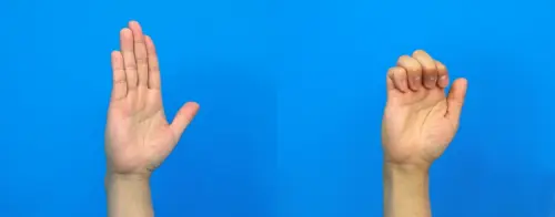 ‘Hook fist’ exercise – 손가락 관절을 그림처럼 구부렸다가 편다. 10~20회 반복한다.
