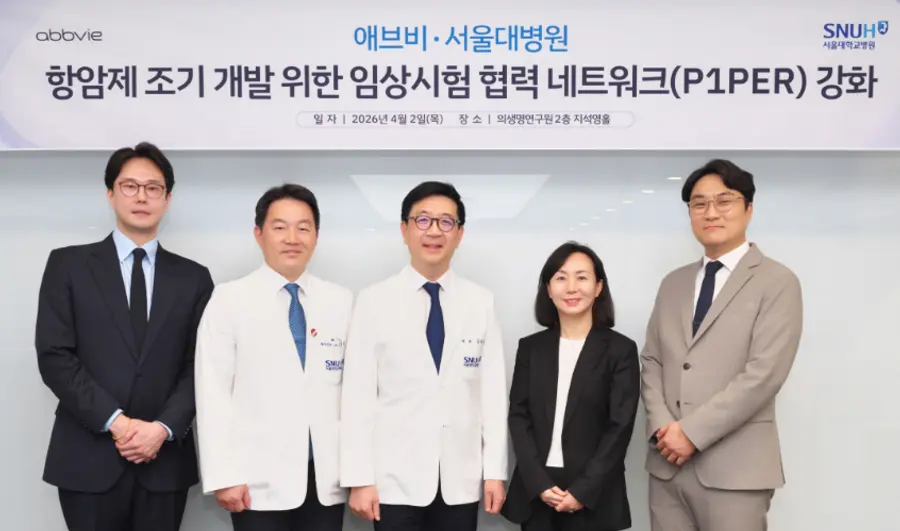 한국애브비(대표이사: 강소영)는 지난 2일 서울대학교병원(이하 서울대병원)과 애브비의 P1PER(Phase 1 Partnerships for Excellence in Research) 네트워크를 통해 항암제 조기 개발을 가속화하기 위해 지속적으로 협력한다고 밝혔다.