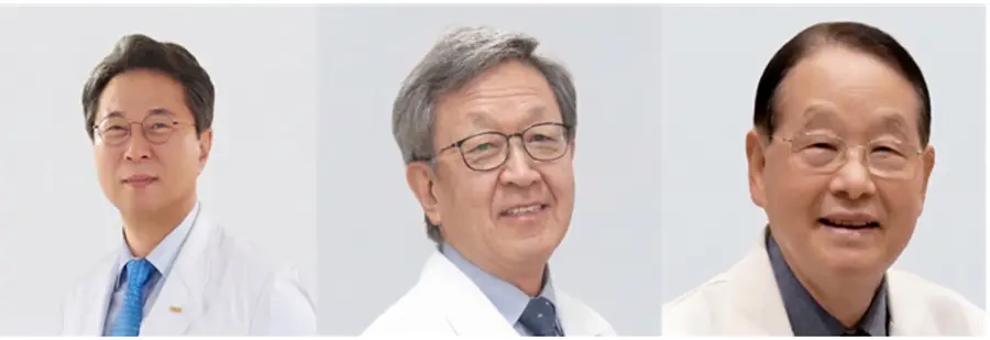 ▲제34회 JW중외박애상 수상자인 순천향대학교 부천병원 신응진 교수, JW중외봉사상 수상자인 서울아산병원 전성훈 교수, 의료법인 한마음의료재단 하나병원 박중겸 이사장.
