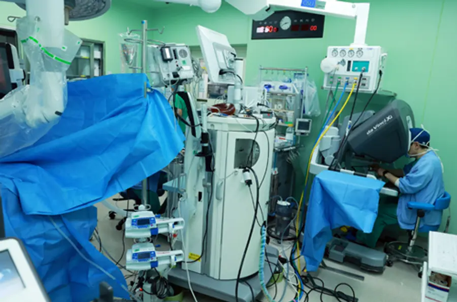 사진 : 함원식 로봇내시경수술센터 소장이 로봇수술을 진행 중이다.