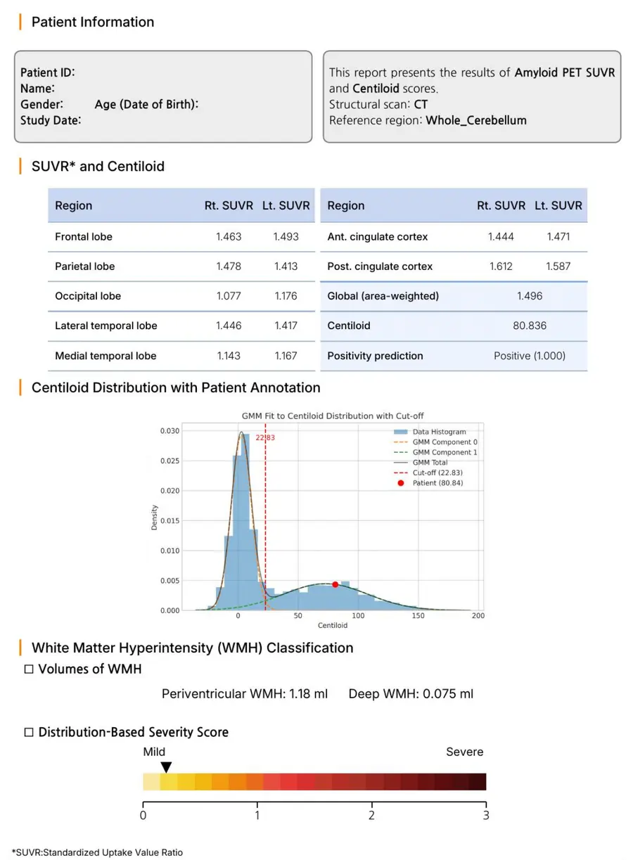 그림 설명 : 아밀로이드 축적 정도를 수치화한 정량분석 리포트