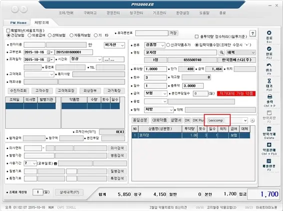 PM2000 - Lexicomp 시범서비스 예시 화면 (우측 중간 적색박스)
