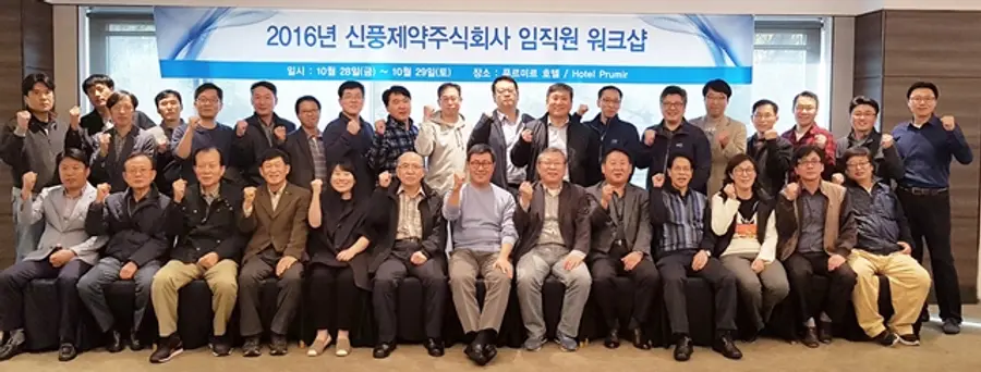 신풍제약(주)(대표 유제만)는 지난 28일∼29일 양일간 경기도 화성에 위치한 푸르미르 호텔 연수원에서 임원 및 부서장들의 직무별 경쟁력과 리더십강화를 위한 ‘2016년, 신풍제약(주) 임직원 워크샵’을 실시했다.