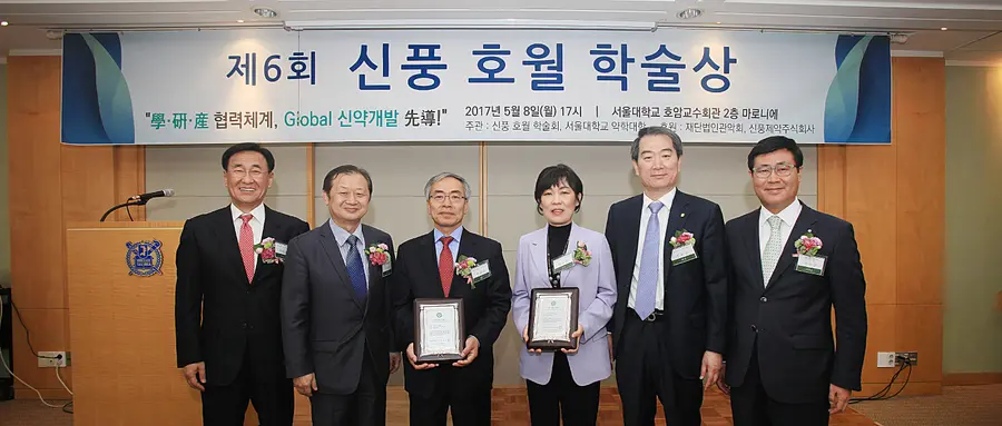 신풍 호월 학술회(이사장 장원준)와 서울대학 약학대학(학장 이봉진 교수)이 공동 주관하고 재단법인 관악회와 신풍제약이 후원하는 ‘제6회 신풍 호월 학술상’ 신약연구개발부문상에 서울대 약대 이상국, 이호영 교수가 공동수상자로 선정됐다.