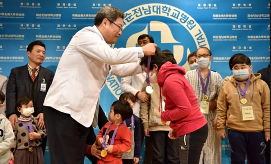 정신 원장· 국훈 교수(소아청소년과·전남대어린이병원장) 등 의료진들은 이날 40명의 환아들에게 일일이 완치메달을 걸어주었다. 동물 캐릭터 옷을 입은 의료진들의 축하무대와 완치 환아가족들의 장기자랑도 이어져 웃음꽃을 피웠다. 화순교육지원청(교육장 정혜인)에서 주최했던 환아들의 백일장 시상, 행운권 추첨도 있었다.