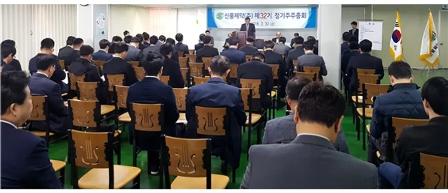 신풍제약(주)(대표, 유제만)은 3월 30일 경기도 안산시 목내동 신풍제약 강당에서 임직원 및 주주들이 참석한 가운데 제32기 정기주주총회를 진행했다.