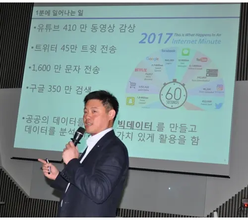 ▲유유제약 유원상 부사장이 제13회 경기도 약사학술대회서 '빅데이터로 보는 약국시장'을 주제로 강연을 진행했다.
