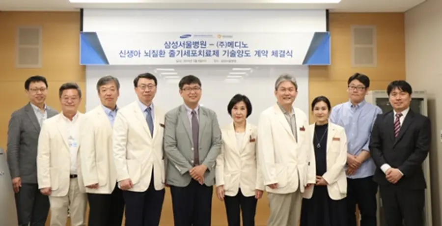 삼성서울병원(원장 권오정)은 ㈜메디노(대표 주경민)와 신생아 난치성 뇌질환인 저산소성허혈성뇌병증과 미숙아의 심한 뇌실내 출혈에 대한 줄기세포치료제 개발과 관련한 기술 양도 계약을 체결했다.