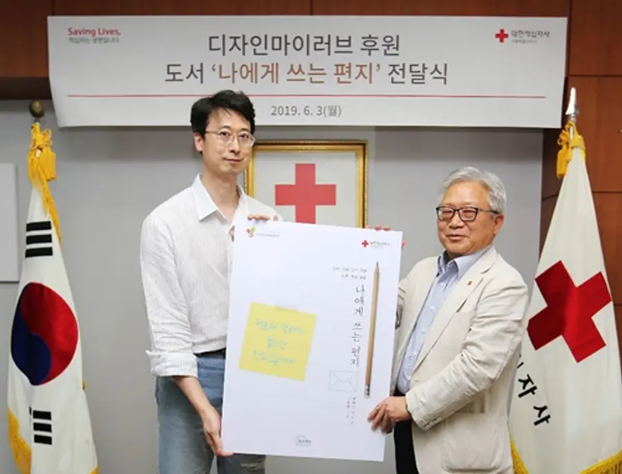 사회적기업 디자인마이러브(대표 이윤형)는 3일 대한적십자사 서울특별시지사(회장 김흥권)에 도서 ‘나에게 쓰는 편지’ 1,000권을 기부했다.