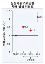 치매의 형태별로는 혈관성 치매의 경우 2배, 알츠하이머 치매는 약 1.3배 발생 위험이 높은 것으로 조사됐다. 뇌경색이 발생한 환자를 제외해도 큰 차이는 없었다.