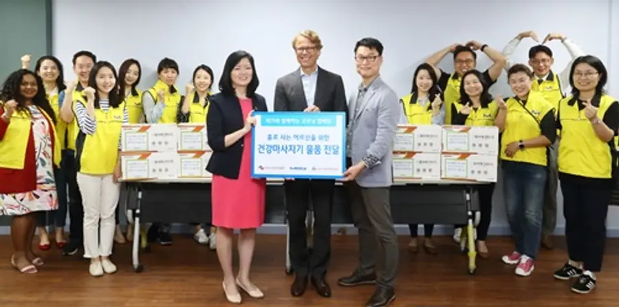 또한 한국머크는 올해 초 진행한 ‘환자를 위한 한 마음, 독거노인을 위한 한 마음’ 사내 바자회 행사로 마련된 기금과 회사의 매칭 그랜트 전액을 파트너 기관인 독거노인종합지원센터에 기부했다. 추가적으로 도움의 손길이 필요한 전국 90명의 독거노인에게 건강 맛사지기도 함께 전달됐다.