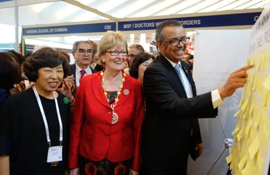테드로스 WHO 사무총장은 이날 대한간호협회가 대회 행사장 내에 마련한 홍보부스에서 방명록에 서명한 후 마리안느와 마가렛 간호사 노벨평화상 후보 추천을 위해 마련된 포스트잇에 직접 본인의 직책과 이름이 적고 참여를 약속해 전 세계 간호사들로부터 찬사를 받았다.