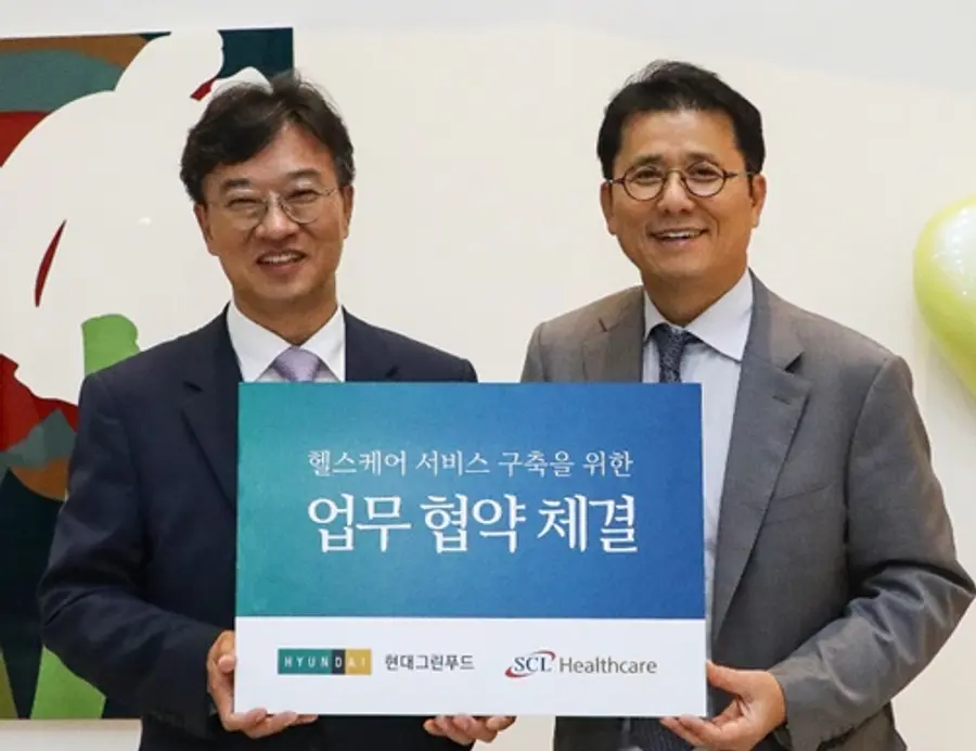 글로벌 헬스케어 기업을 추구하는 (주)SCL헬스케어(회장 이경률, 이하 SCL헬스케어)는 16일 (주)현대그린푸드와 헬스케어 서비스 구축을 위한 업무 협약을 체결했다.