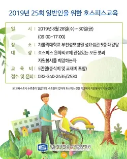 가톨릭대학교 부천성모병원(원장 권순석)은 오는 8월 28일부터 30일까지 3일에 걸쳐 부천성모병원 성요셉관 대강당에서 ‘제25회 일반인을 위한 호스피스 교육’을 실시한다.