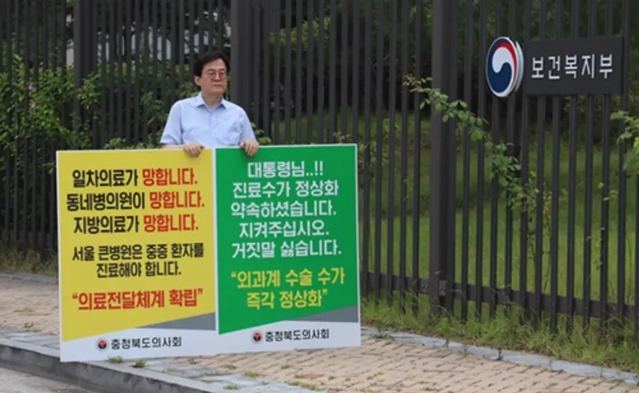 충청북도의사회 안치석(사진) 회장이 의협의 의쟁투 활동에 적극 공조하기 위해 지난 15일부터 19일까지 5일간 세종 보건복지부 청사 앞에서 1인시위를 펼쳤다.