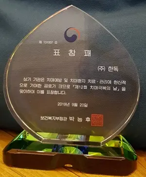 한독은 서울특별시와 함께하는 ‘기억다방(기억을 지키는 다양한 방법)’ 캠페인을 통해 치매 인식 개선에 힘쓴 공로를 인정받아 16일 서울시청에서 진행된 제 12회 치매극복의날 기념행사에서 보건복지부장관 표창을 수상했다.