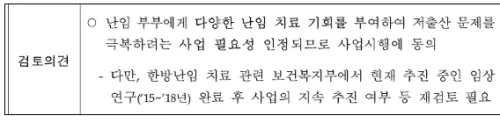 결과적으로 연구책임자의 주장과는 달리 현대과학과 근거중심의학 기준에서 한방난임치료의 유효성 및 안전성을 입증하는데 실패했다. 이 연구는 임상시험이 아니라 지자체 한방난임사업을 재탕한 수준에 불과하다. 보건복지부는 그간 누누이 약속한 대로 지자체의 한방난임사업의 지속 추진 여부 등을 신속히 재검토하여 즉각 중단시킬 것을 강력히 촉구하는 바이다.