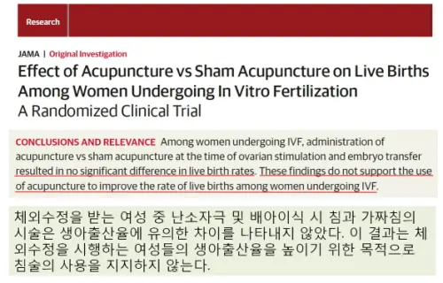 한방난임 임상연구는 한방난임치료의 유효성 및 안전성 입증에 실패했다