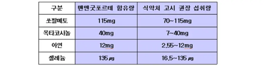 〈 맨앤굿 포르테 주성분별 함유량 〉