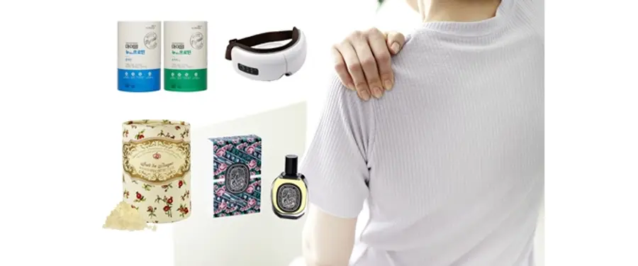 ▲ (좌측 상단부터 시계방향) 대상웰라이프 ‘마이밀 뉴프로틴’, 편한잠 ‘푸욱슬립온열안대’, 딥디크 ‘오 카피탈 오 드 퍼퓸’, 산타 마리아 노벨라 ‘살리 다 바뇨-알 멜로그라노’