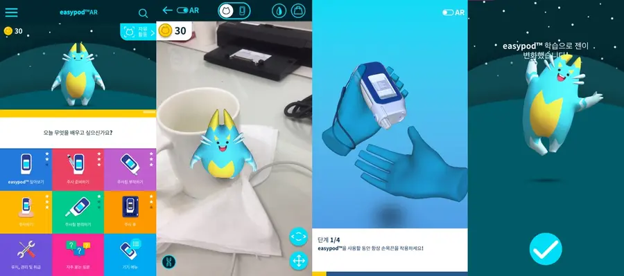 증강 현실(Augmented Reality), 3D 애니메이션, 모션 인터랙션(Motion Interaction) 기술을 기반으로 제작됐으며 사용자 친화적인 요소들이 가미된 앱을 통해 게임처럼 튜토리얼을 따라가는 과정에서 환자와 보호자 모두가 ‘이지포드™’ 자가 주사 사용법을 습득할 수 있다.