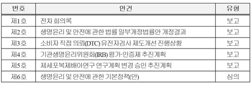 생명윤리 기본정책(안) 심의, 기관생명윤리위원회 인증제 추진안 보고