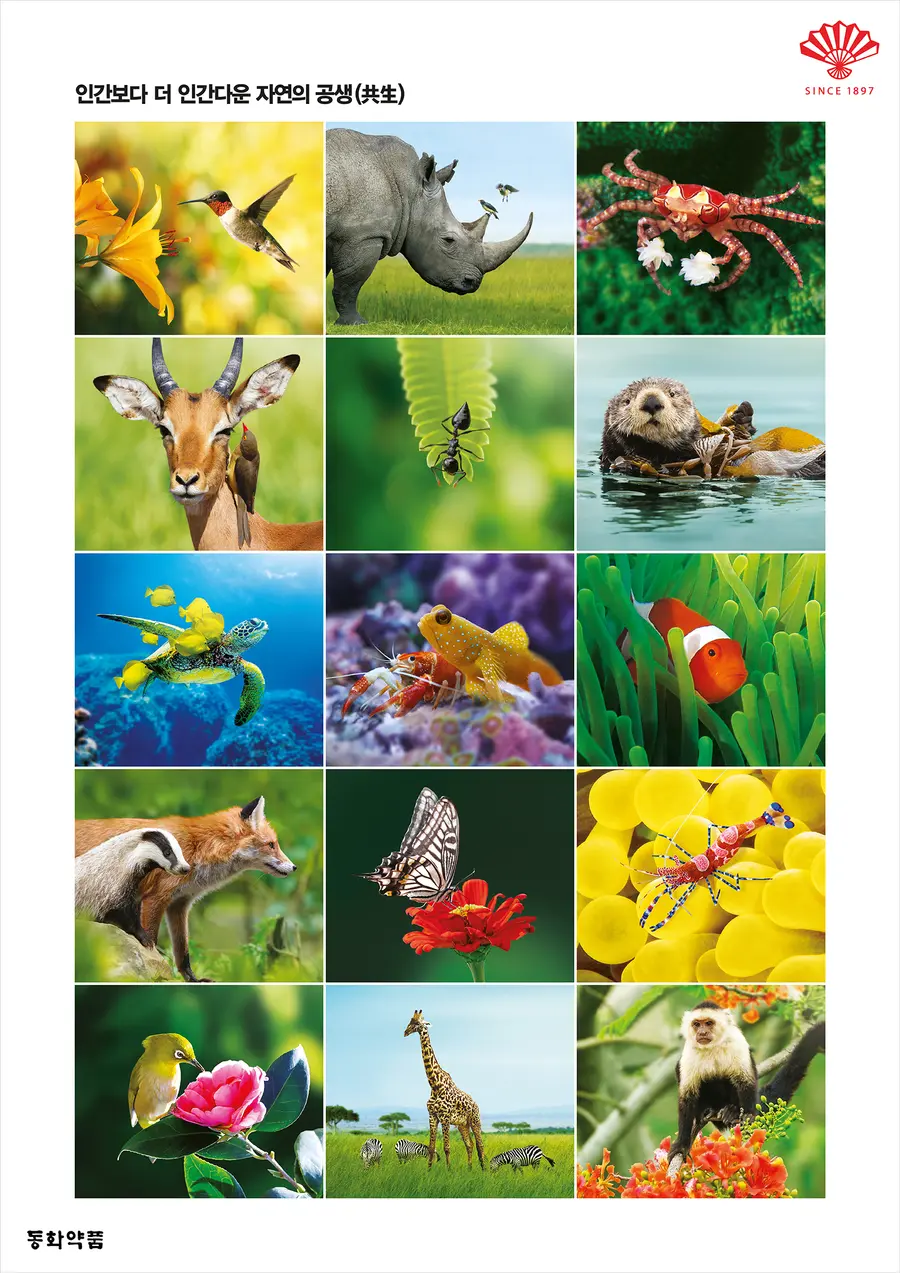 동화약품의 공생 시리즈는 ‘인간보다 더 인간다운 자연의 공생(共生)’을 주제로 하여, 흰동가리와 말미잘, 코뿔소와 할미새, 임팔라와 붉은부리소등쪼기새, 붉은목벌새와 헤메로칼리스 등 자연 속 동물을 주인공으로 제작된 15편의 시리즈 광고다.