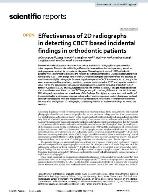 논문의 제목은 ’치아교정환자 대상의 치과 엑스레이 영상 검사 분석으로 뇌, 안면부 주요 질환 진단의 가능성(Effectiveness of 2D radiographs in detecting CBCT-based incidental findings in orthodontic patients)‘이다.