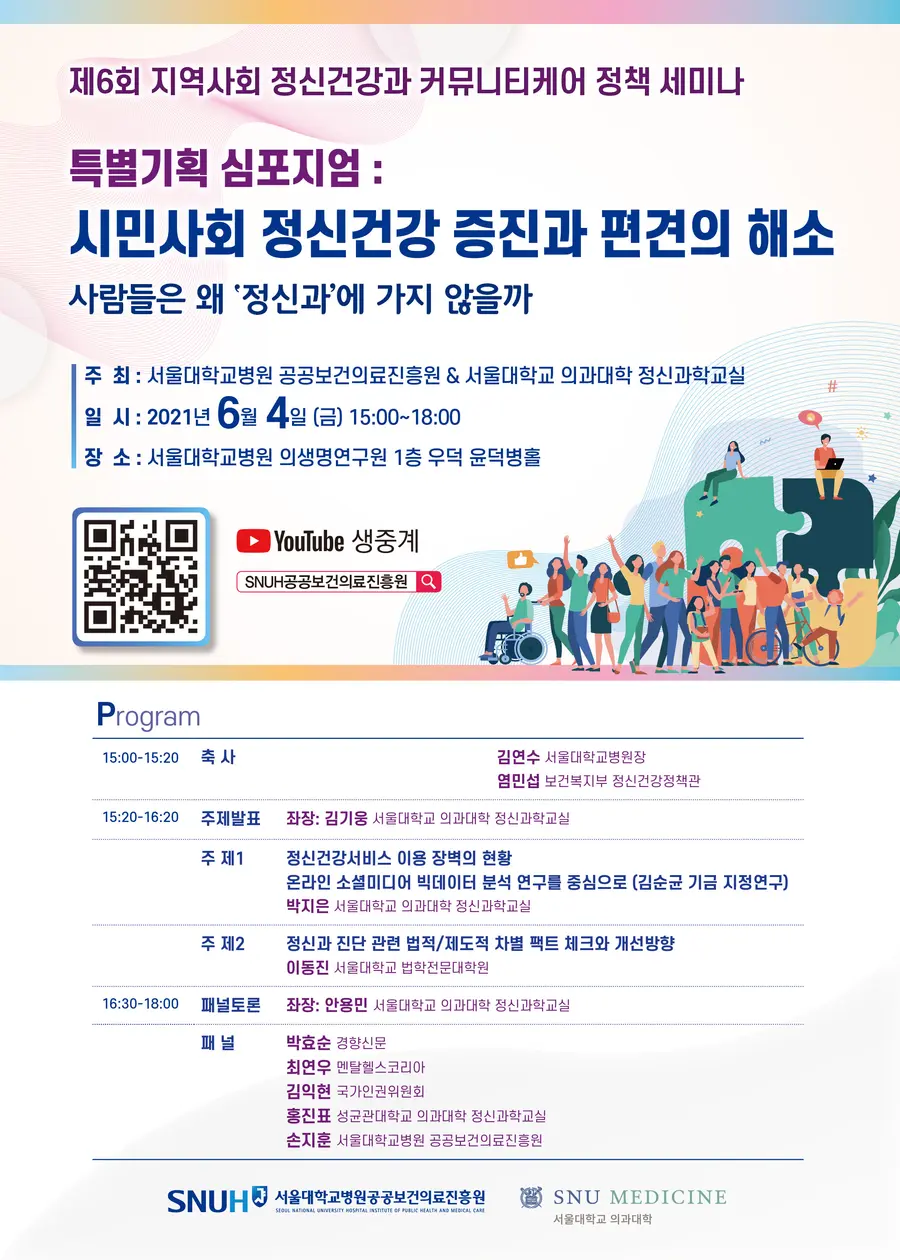 서울대병원이 대국민 특별기획 심포지엄 ‘시민사회 정신건강 증진과 편견의 해소: 사람들은 왜 정신과에 가지 않을까’를 개최한다.