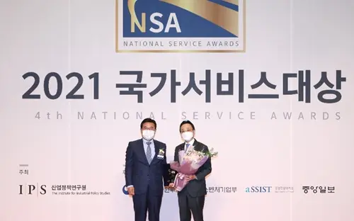 '2021 국가서비스대상'은 산업정책연구원이 소비자에게 올바른 가이드를 제공하기 위해 서비스가치, 소비자만족, 커뮤니케이션 등 항목을 정량화해 각 부문별로 한 해 동안 널리 사랑 받은 서비스를 선정하는 상이다.