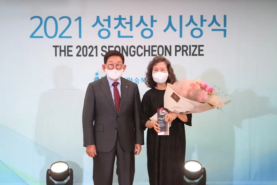 제9회 성천상 시상식에서는 수상자 이미경 서울장애인종합복지관 전문의에게 상금 1억 원과 상패를 전달했다.