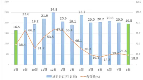 진흥원, 8월 보건산업 월간 수출 19.5억 달러로 전년比 18.3% 증가