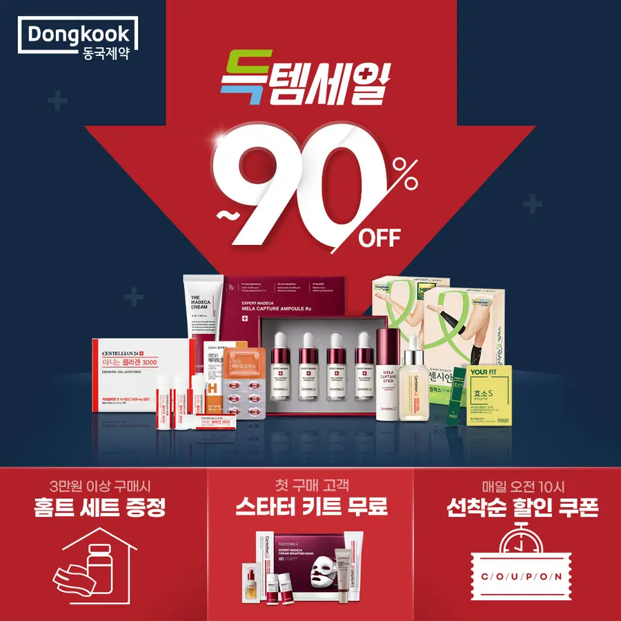 또한, 동국제약 공식 헬스케어 온라인 쇼핑몰 ‘DK SHOP’에서는 17일부터, 구매자들을 대상으로 사은품과 쿠폰을 증정하는 설 맞이 득템세일 행사를 진행한다. 매일 최대 금액 구매 고객 5명에게는 더 마데카크림 리미티드 에디션 1박스를 증정하고, 3만원 이상 구매 고객에게 홈트 세트 3500개를 선착순 증정한다. 또한, 장바구니 쿠폰과 상품 할인 쿠폰을 선착순으로 매일 오전 10시 다운받을 수 있다.